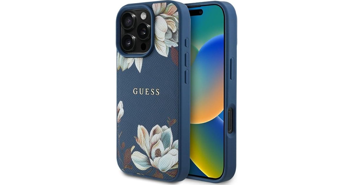 Arvake ära terava trükitud lillemustri magsafe jaoks iPhone 16 pro max sinine