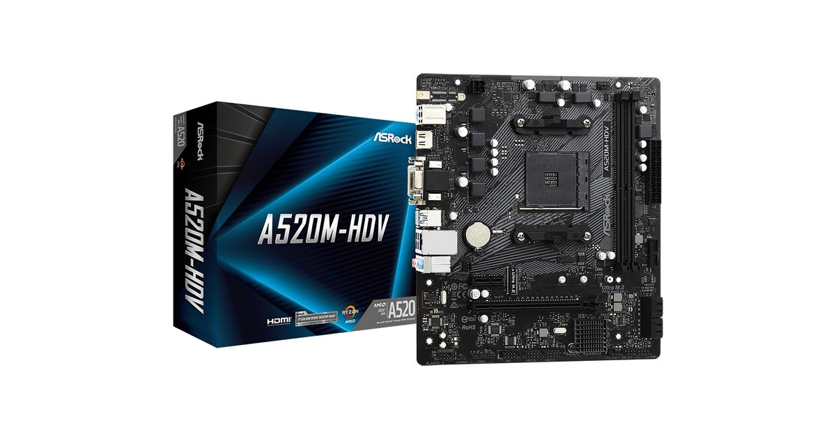 Asrock A520M-HDV, AMD, Kanta AM4, 3rd Generation AMD Ryzen™ 3, 3rd Generation AMD Ryzen 5, 3rd Generation AMD Ryzen™ 7, 3rd..., DDR4-SDRAM, 64 GB, DIMM