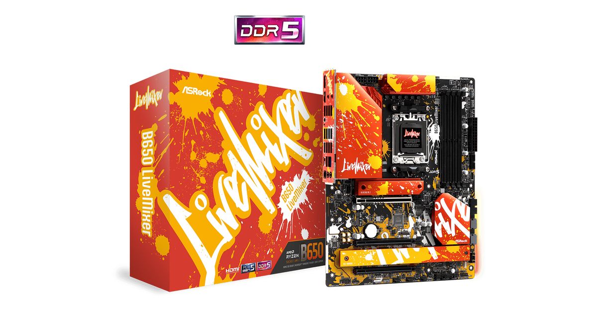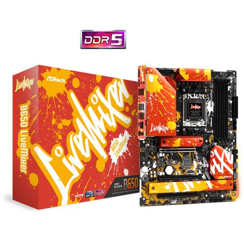 Asrock B650 LiveMixer, AMD, Pistoke AM5, AMD Ryzen™ 7, AMD Ryzen 9 7th Gen, AMD Ryzen™ 5, DDR5-SDRAM, 128 GB, DIMM