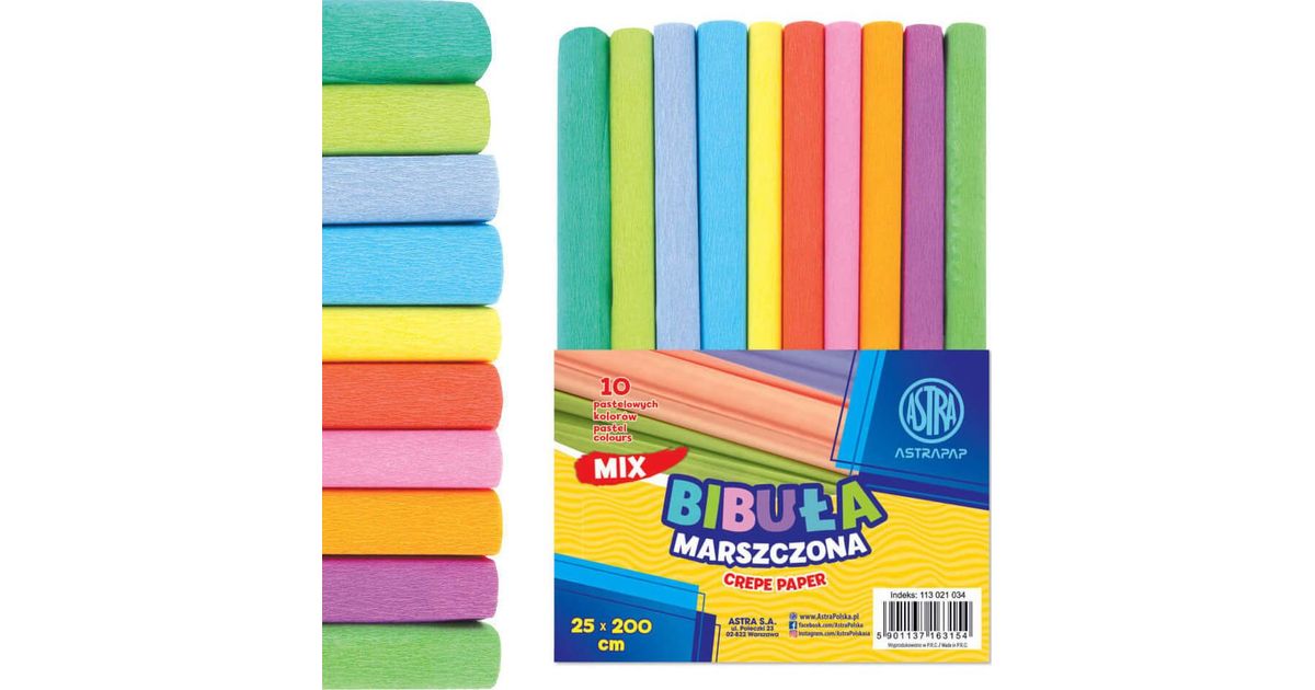 Astra-papier Bibuła marszczona pastel 25x200cm mix (10szt)