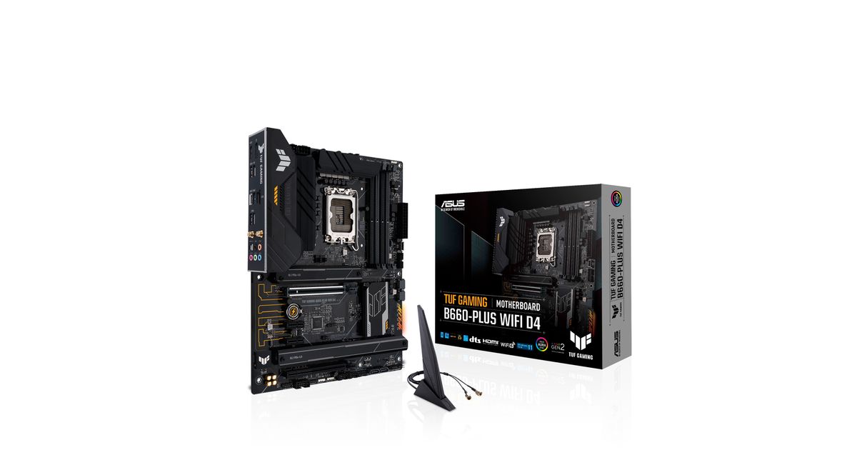 ASUS TUF GAMING B660-PLUS WIFI D4, Intel, LGA 1700, Intel® Celeron®, Intel® Core™ i3, Intel® Core™ i5, Intel® Core™ i7, Intel® Core™ i9,..., DDR4-SDRAM, 128 GB, DIMM