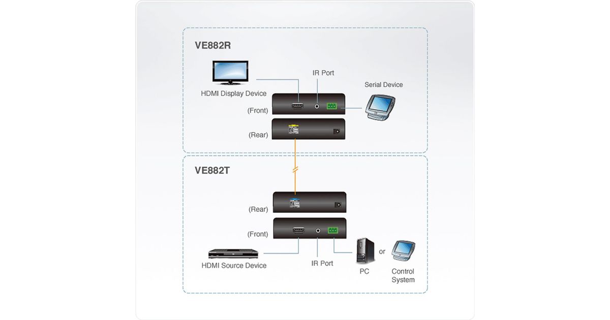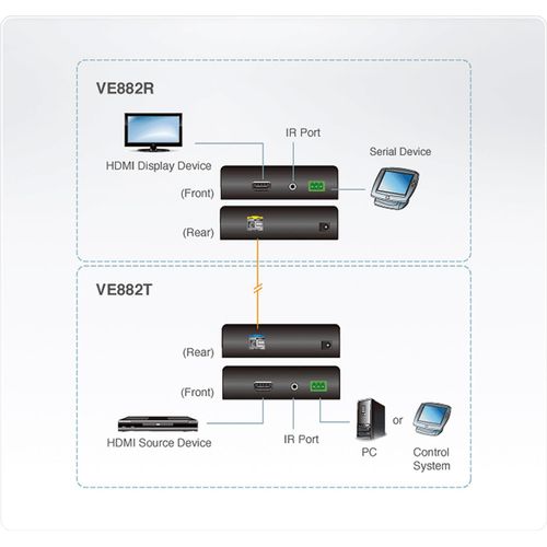ATEN VanCryst VE882 HDMI Optical Extender Transmitter and Receiver Units - Video-, Audio-, Infrarot- und serielle Erweiterung - HDMI - bis zu 600 m - 1310 nm / 1550 nm (VE882)