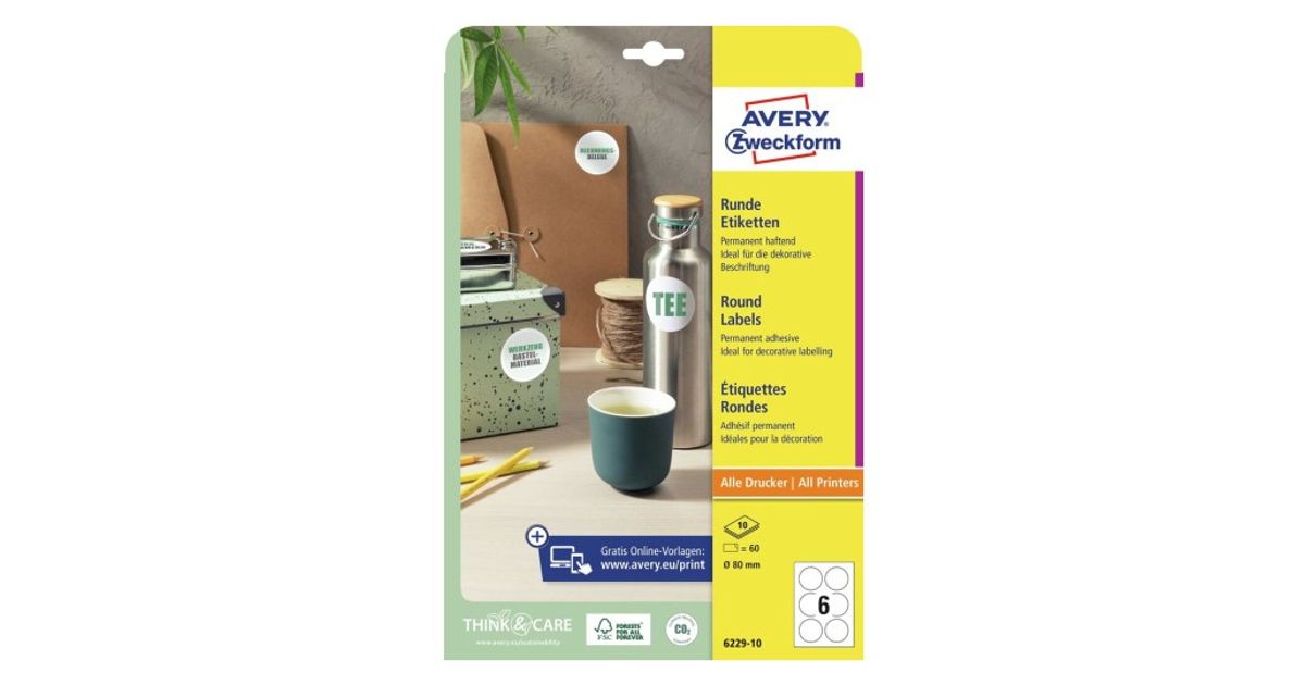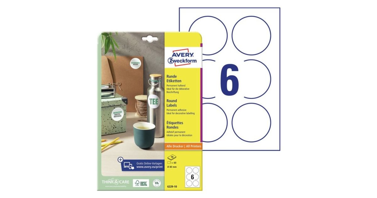 Avery 6229-10 liimaetiketti Pyöreä Kiinteä Valkoinen 60 kpl