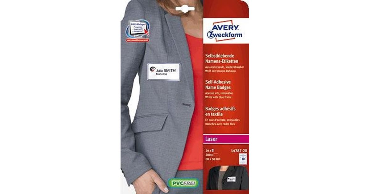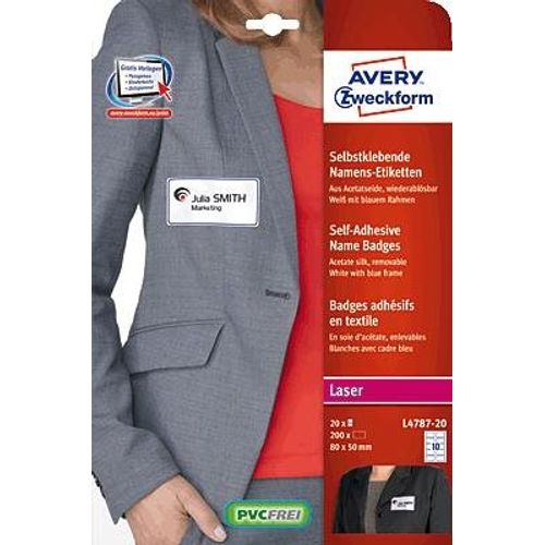 Avery L4787-20, Valkoinen, Laser, 80 x 50 mm, 200 kpl, 20 arkkia