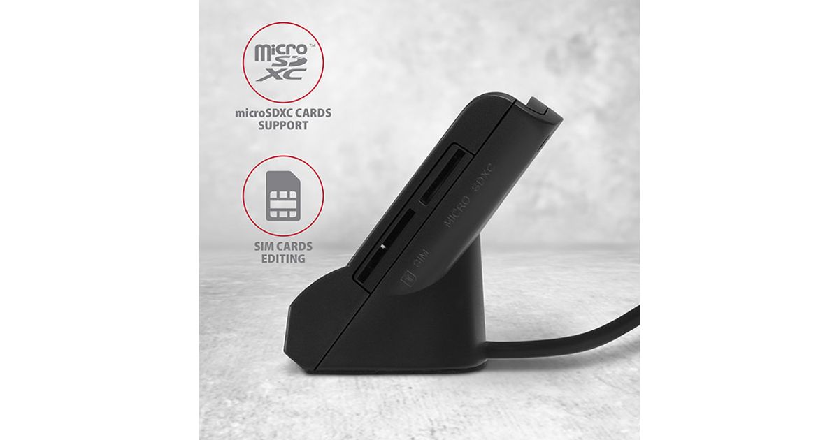 Axagon CRE-SM2, USB 2.0, 1,3 m, Musta, 91 g