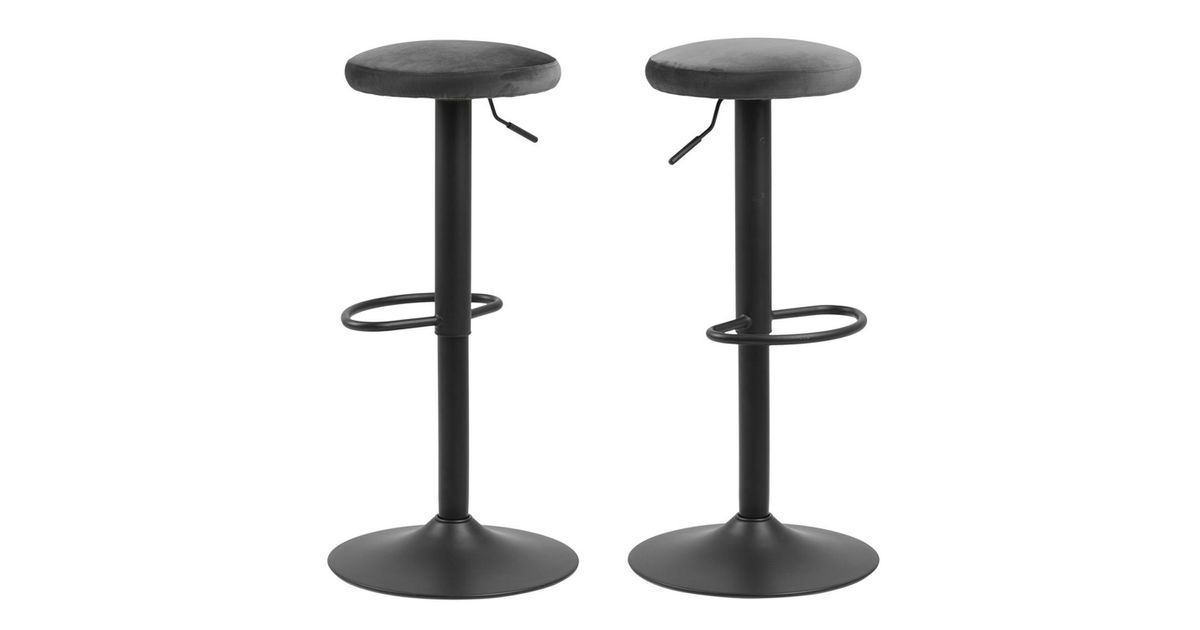 Baarijakkara FINCH, S40xH82cm, istuin: samettikangas tummanharmaa, jalkatuki: jauhemaalattu karkea, mattamusta. istuin: VIC-kangas tummanharmaa 28, kaasunostin, jalkatuki, istuinkorkeus: H62-82cm.