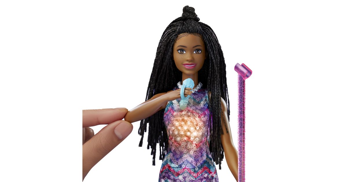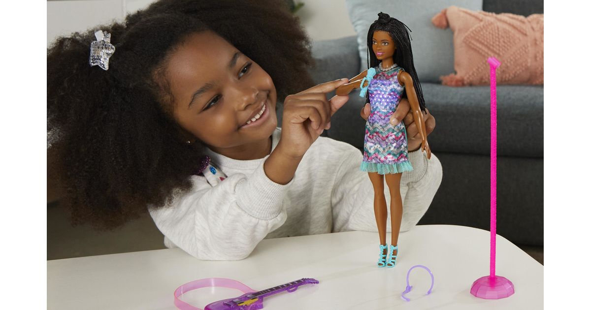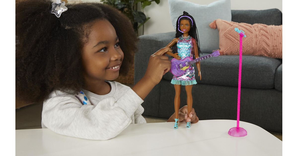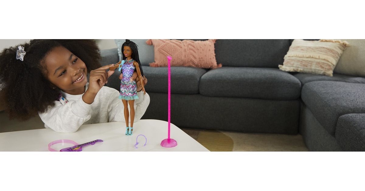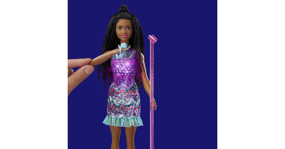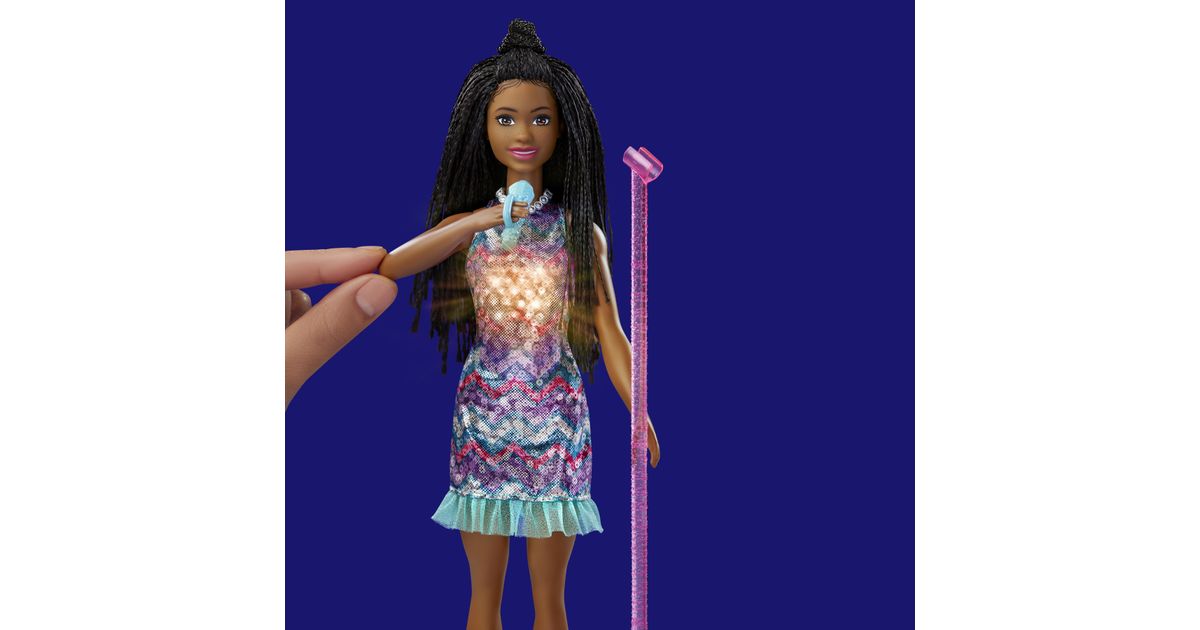 Koe huikeita hetkiä keikkalavalla Brooklyn-Barbie-nuken kanssa – nukke on pukeutunut Barbie: Big City, Big Dreams -elokuvasta tuttuun esiintymisasuunsa! Kun nostat mikrofonin Barbie-nuken suun eteen, musiikki alkaa soida, mekkoon syttyy valot ja nukke ”laulaa” kahta elokuvassa kuultua laulua! Kun lasket käsivarren takaisin alas, musiikki jatkuu, mutta Barbie lopettaa ”laulamisen”, kunnes nostat mikrofonin uudelleen. Yli 3-vuotiaat voivat ottaa duettoon mukaan myös Malibu-Barbie-nuken – kahdelle nukelle on kahta hauskempaa keksiä uusia seikkailuja! Nukke ei pysy pystyssä ilman tukea. Värit ja kuviot saattavat vaihdella.