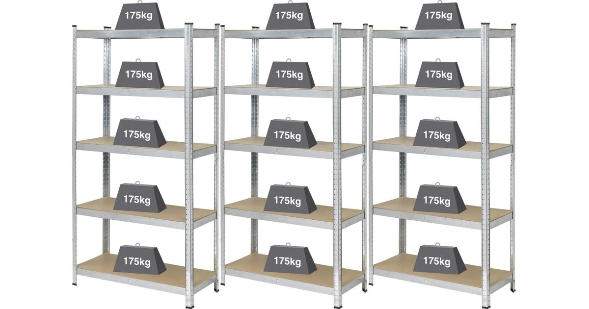 Basetech Basetech 2142910 Reol til tunge genstande 175 kg sæt med 3 stk. (P x K x S) 900 x 1800 x 400 mm GS Metall, MDF Trægulv Forzinket, Sølv