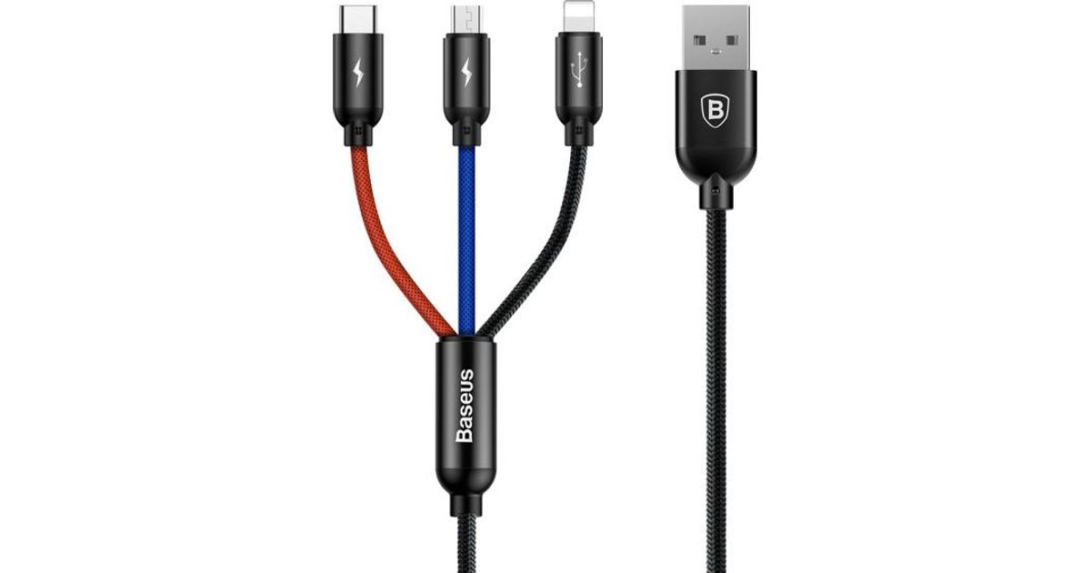 Baseus CAMLT-ASY01 USB-kaapeli 0,3 m USB A USB C.Micro USB A/Lightning Musta