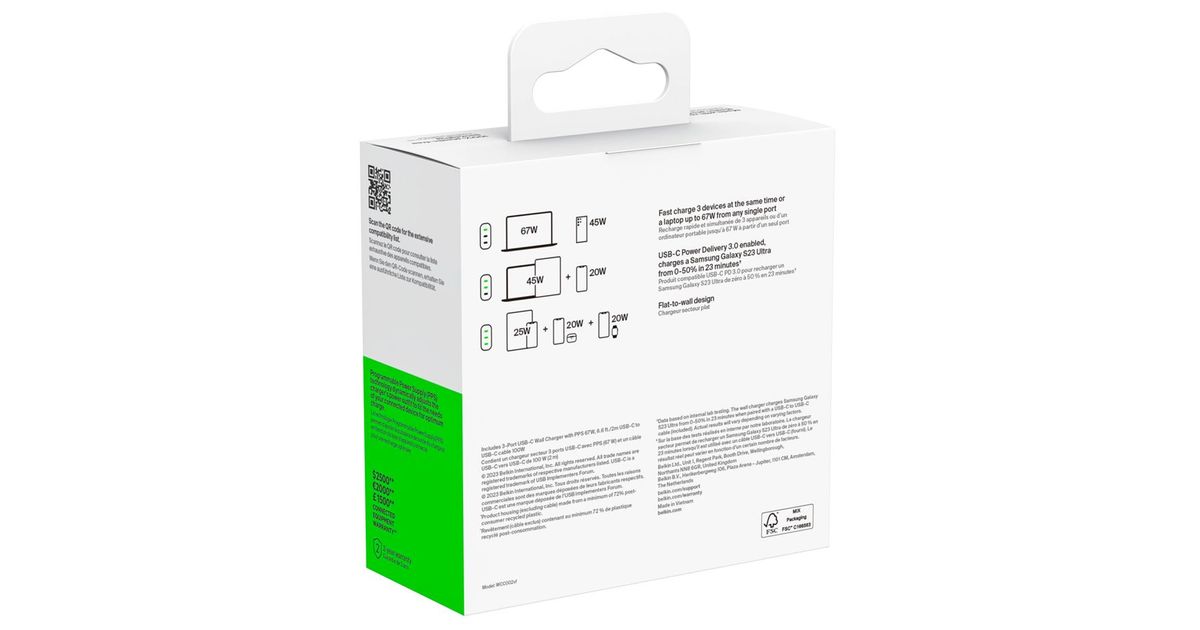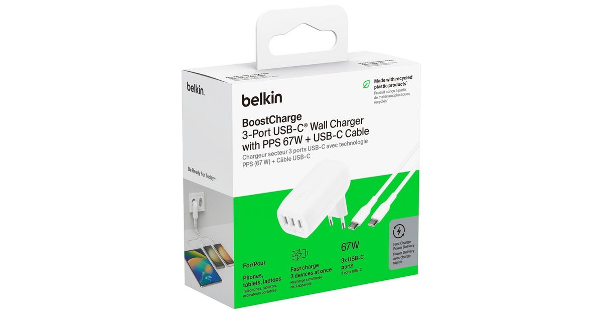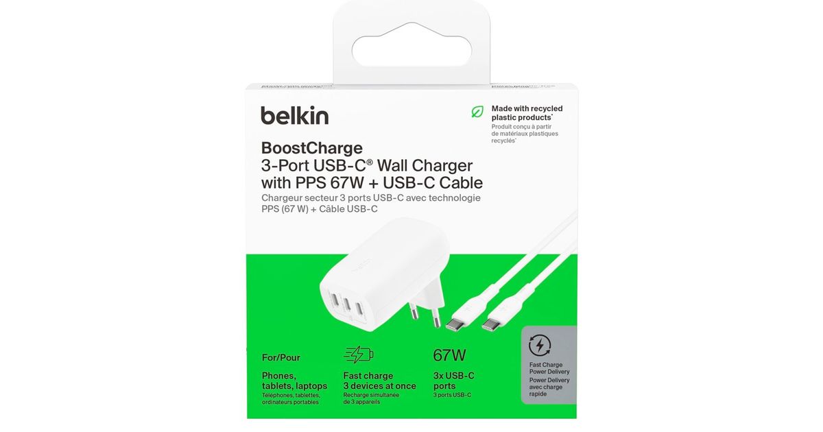 Belkin BOOST Charge USB-C 67W 3xUSB-C + Kabel WCC002vf2MWH-B6
