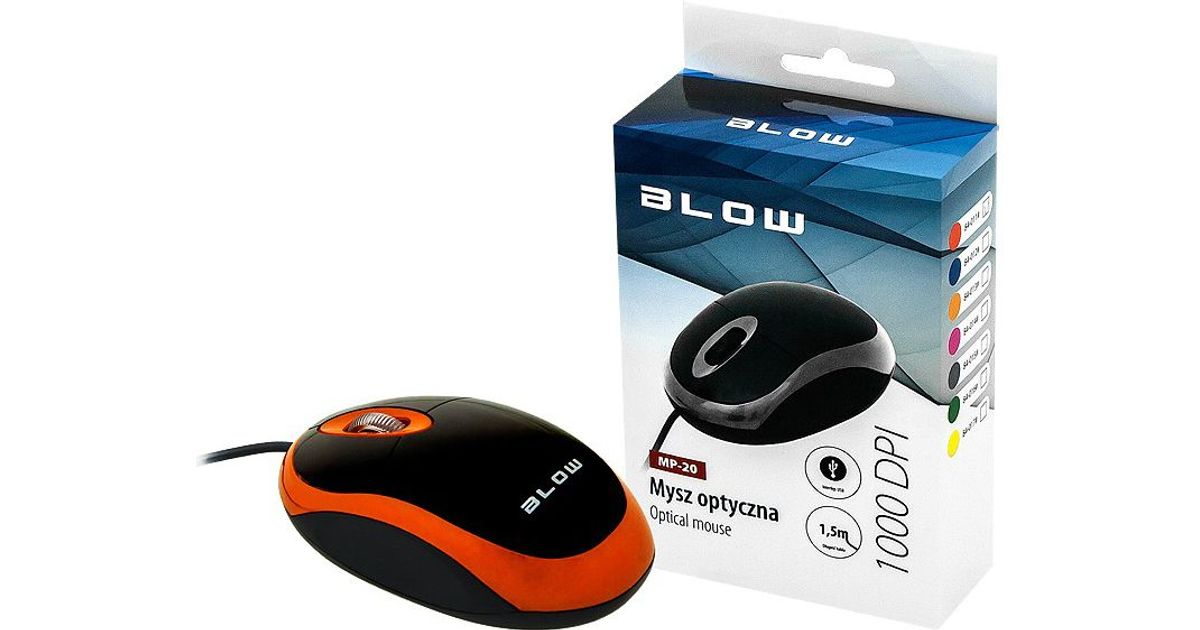 BLOW MP-20, Molempikätinen, Optinen, USB A-tyyppi, 1000 DPI, Musta, Oranssi