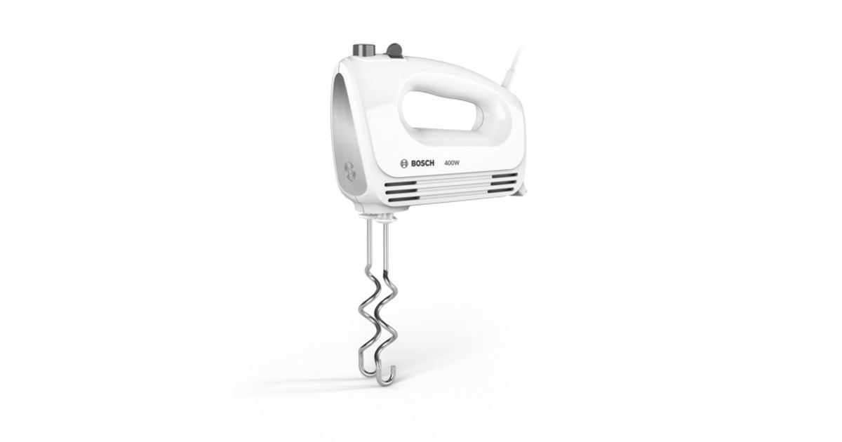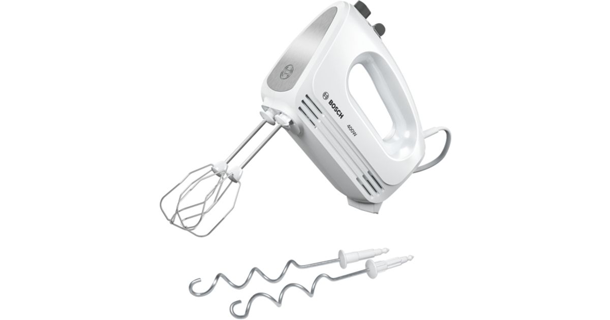 Bosch MFQ24200, Käsisekoitin, Hopea, Valkoinen, Vaivaus, Vaivaus, Sekoitus, Sekoittaminen, Painikkeet, Vipu, Metalli, Muovi, 400 W