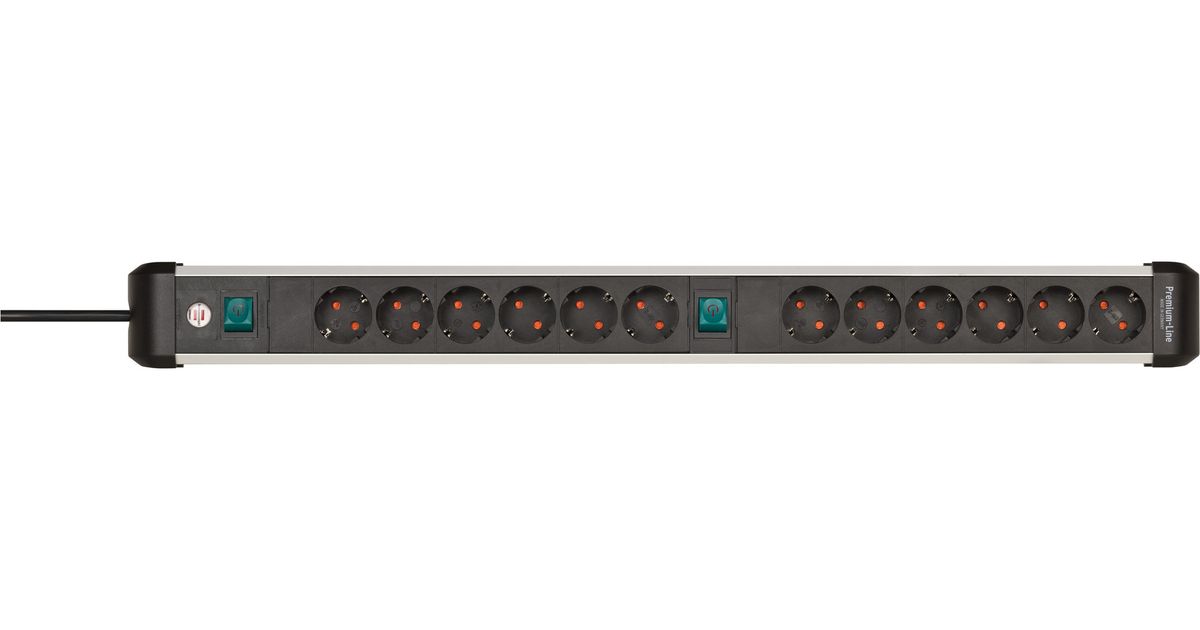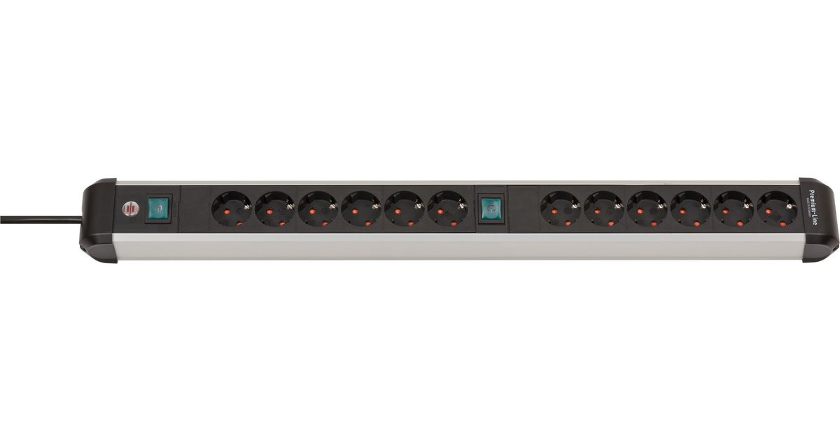 Brennenstuhl 1391030200, 3 m, 12 AC-pistorasia(a), Sisätila, Kulmikas, IP20, Musta, Hopea