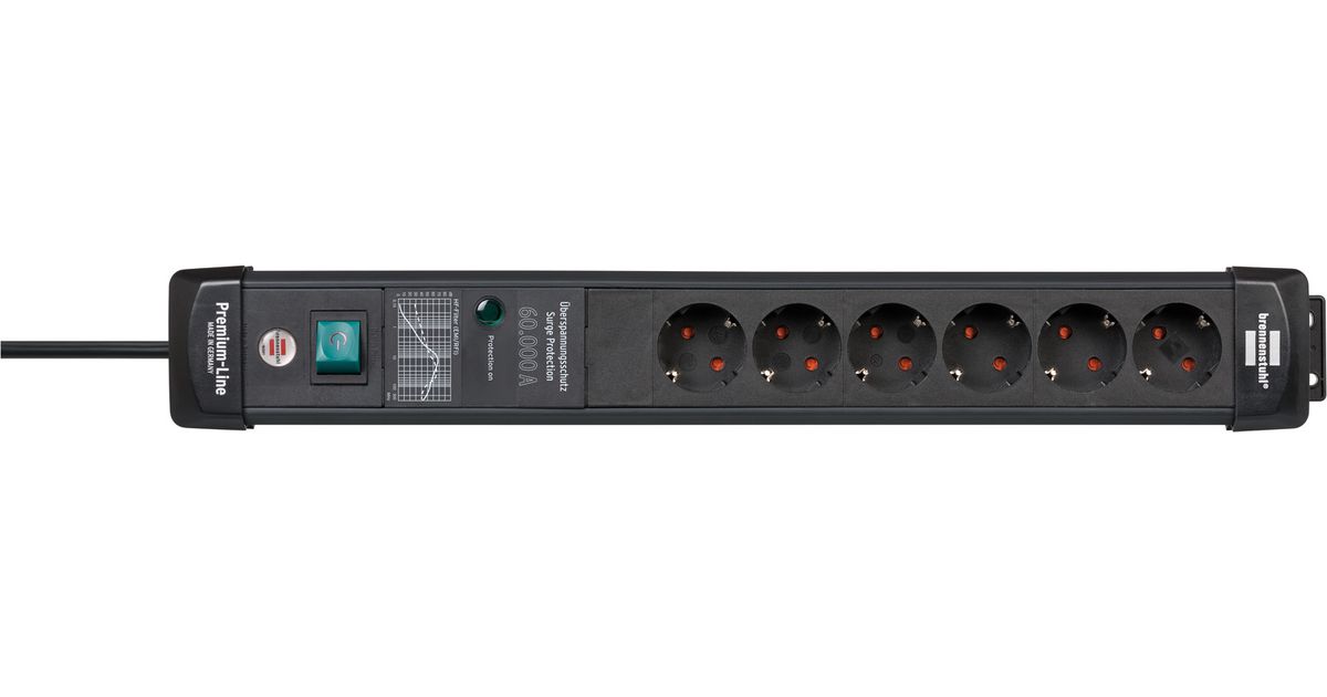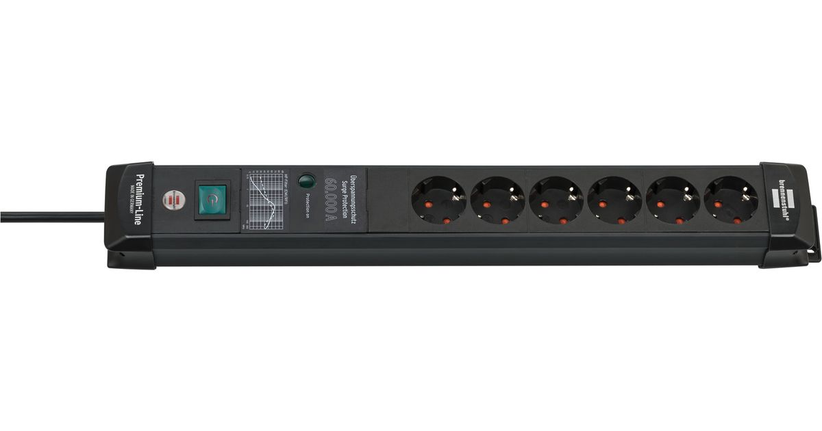 Brennenstuhl 1951160402, 5 m, 6 AC-pistorasia(a), Sisätila, Kulmikas, IP20, Musta