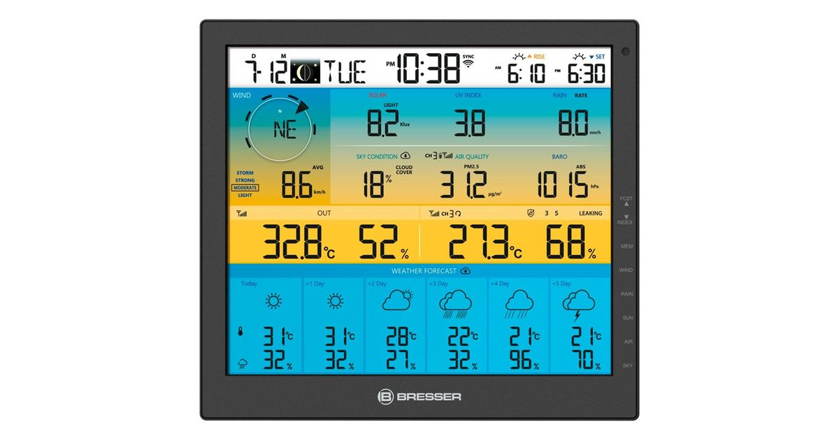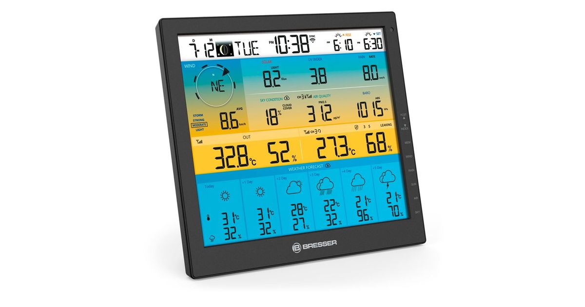 The weather station with solar multi-sensor and large, stylish 10-inch colour screen incl. 6-day weather forecast offers a 6-fold weather overview.