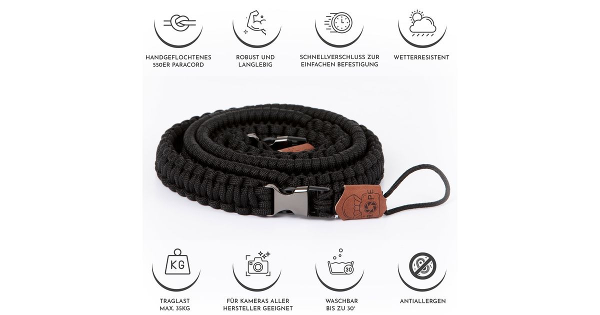 Paracord wird überall da genutzt, wo Sicherheit und Zuverlässigkeit lebenswichtig sind. Beim Fallschirmspringen. Beim Bergsteigen. Beim Outdoorcamping. Und jetzt auch bei Deiner Kamera.