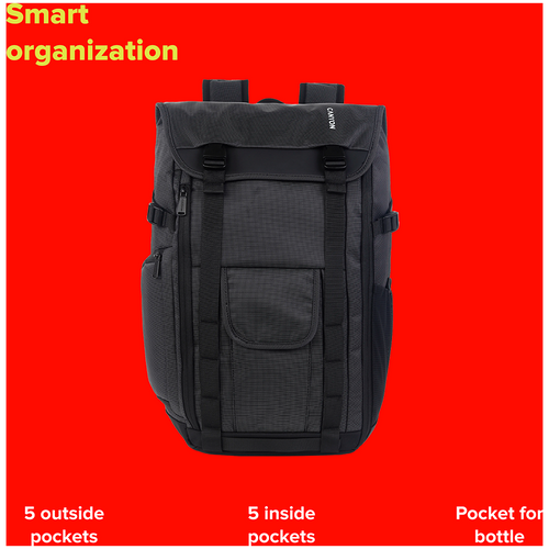 Canyon BPA-5 is the perfect urban backpack for you and your 15-inch laptop. We designed this backpack to look smart and took care of versatility. Just make sure to use up all the pockets it has: five outside and five internal ones. The interior has two separate inner compartments and a laptop sleeve. All your goods will be safe & dry due to the waterproof material we used for this item. It gets even better – an additional side zipper facilitates access to the things you need the most! Pretty cool, huh? Comfort above expectations. An additional side zipper provides easy access inside, so you can pack tight and still have all the necessities at your disposal. Smart organization for your everyday essentials. We added a lot of pockets, and now you can organize your everyday carry in any imaginable way. Five pockets inside, five pockets outside, two separate internal compartments, and a designated sleeve for your 15.6ʺ laptop!