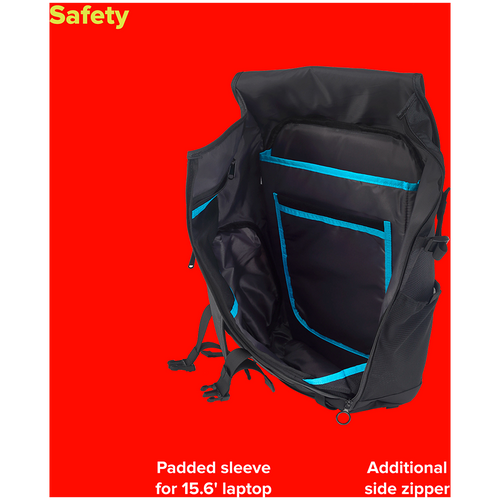 - Additional side zipper for easy access inside