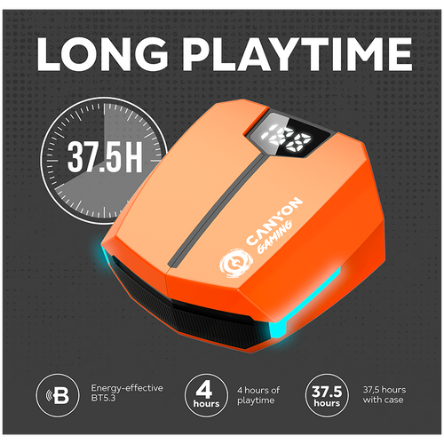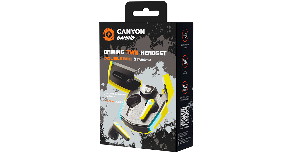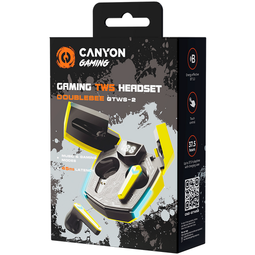 Are you a serious gamer looking for the ultimate audio experience? Look no further than this gaming headset from Canyon — DoubleBee GTWS-2. These true wireless earphones are designed specifically for gaming, providing an immersive audio experience. With a low latency of just 45ms in gaming mode, you'll never miss a beat or experience any lag. There’s also a dedicated Music mode, which ensures the best possible audio quality. The earphones use Bluetooth 5.3 for a stable and energy-efficient connection to your gaming device, allowing you to move around without worrying about losing your connection. With an impressive battery life of up to 4 hours on a single charge and up to 37.5 hours with the charging case, you'll never have to worry about running out of juice mid-game. Besides, the earbuds have a quick charge mode: from zero to full battery in just 60 minutes. It’s worth noting that the charging case has a unique design that resembles the iconic Bumblebee. Available in black, orange, and yellow, this case definitely looks fresh in the world of gray and white earbuds. Get a next-level experience with DoubleBee – the new true wireless headset from Canyon Gaming!