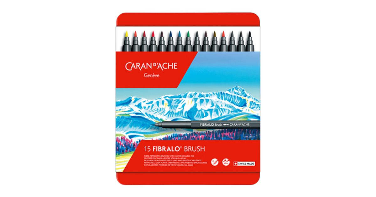 Caran d-Ache Fibralo, 15 väriä, Musta, Sininen, Kulta, Vihreä, Harmaa, Sitruuna (väri), Lila, Oranssi, Vaaleanpunainen,..., Harjaspää, 5 mm, Monivärinen, Kahdeksankulmainen