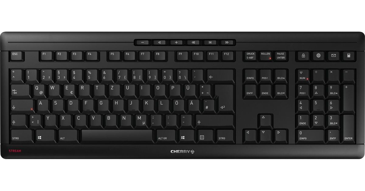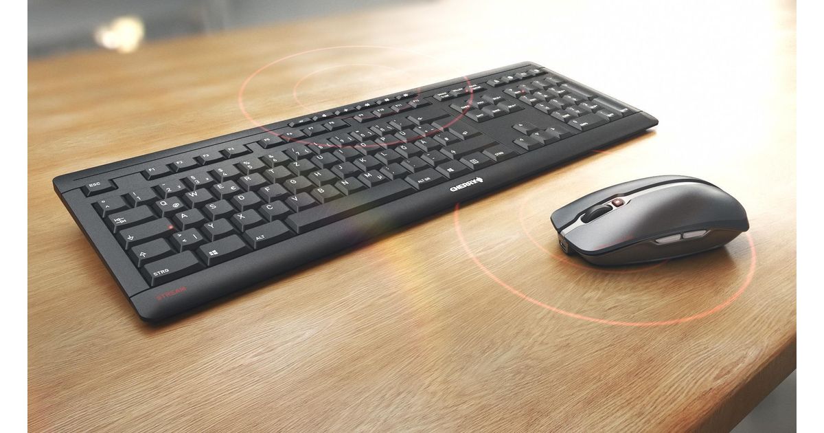 CHERRY Stream Desktop Recharge, Full-size (100%), Langaton RF, QWERTZ, Musta, Sisältää hiiren