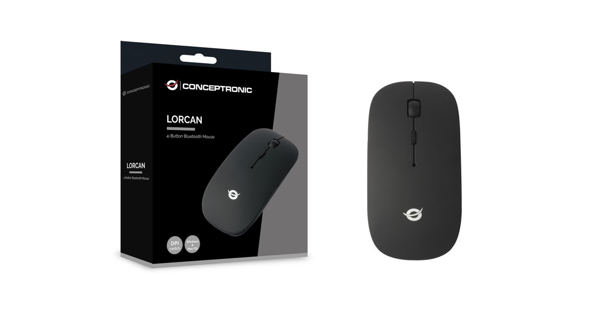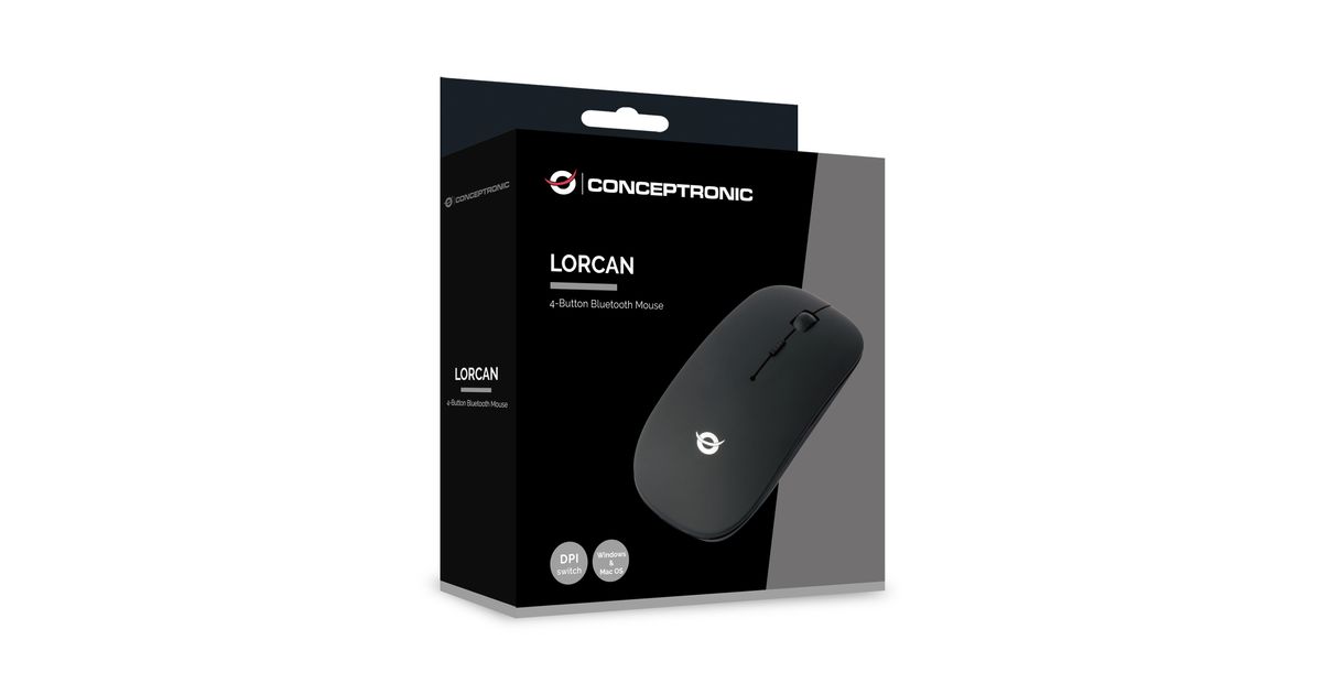 Conceptronic LORCAN01B, Molempikätinen, Optinen, Bluetooth, 1600 DPI, Musta