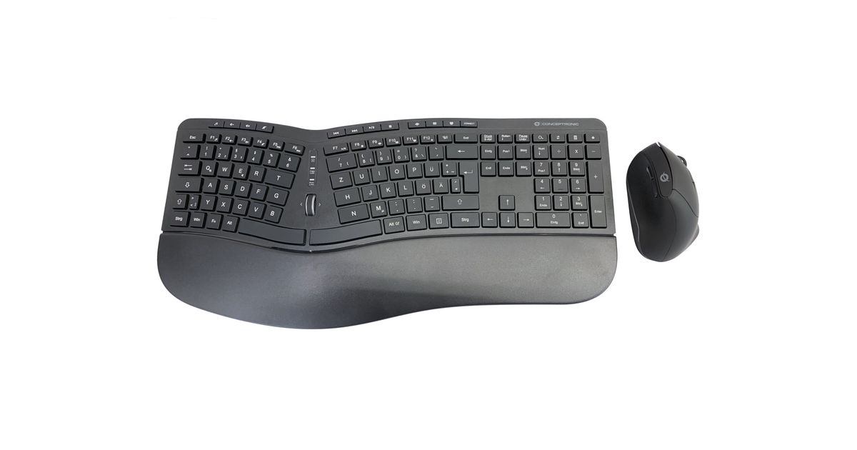 Conceptronic ORAZIO02DE, Täysikokoinen (100 %), Langaton RF, QWERTZ, Musta, Sisältää hiiren