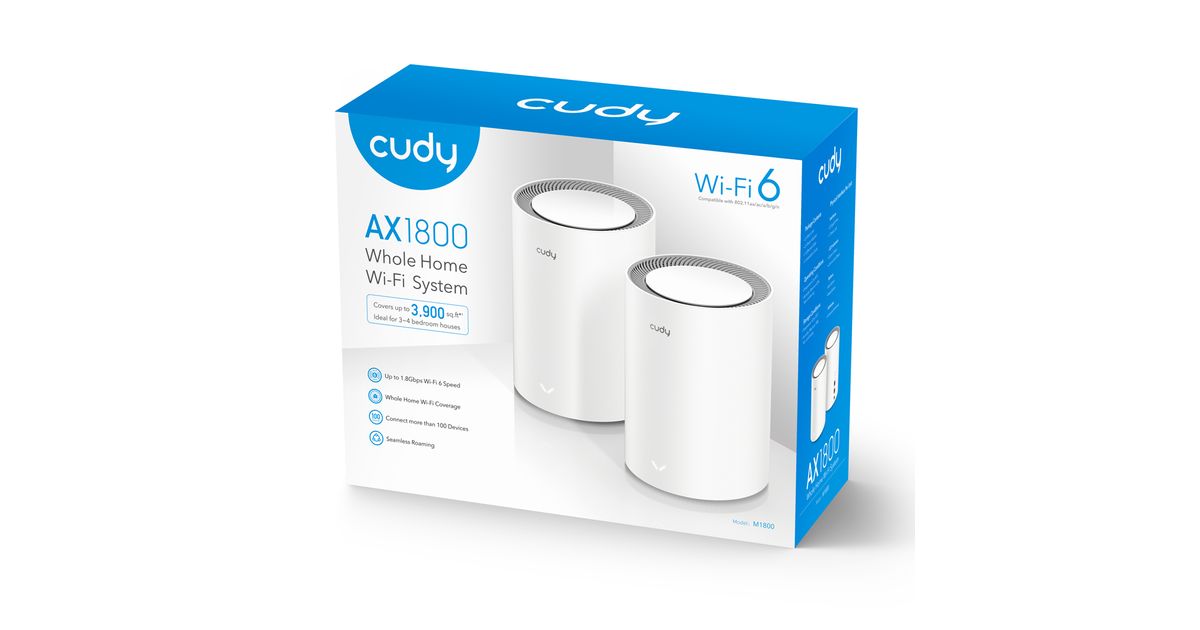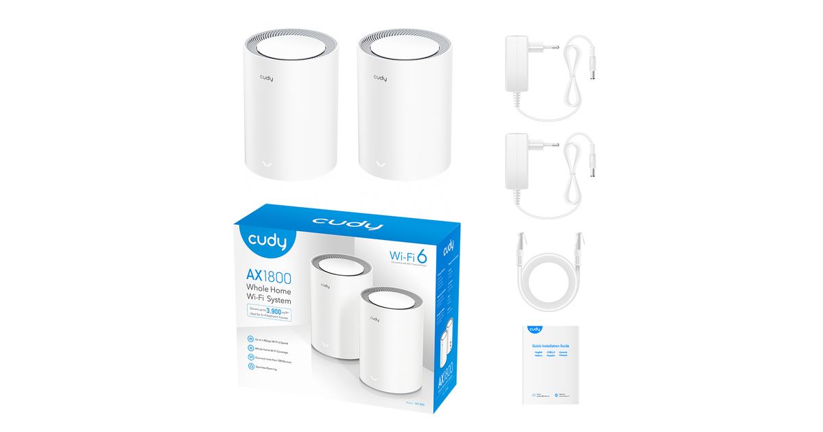 Cudy AX1800, Valkoinen, Sisäinen, Verkkojärjestelmä, Ympärisäteilevä, Kaksitaajuus (2,4 GHz/5 GHz), Wi-Fi 6 (802.11ax)