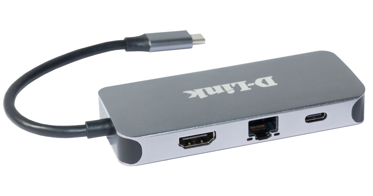 D-Link DUB-2335, USB Type-C, HDMI, RJ-45, USB 3.2 Gen 1 (3.1 Gen 1) Type-A, USB Type-C, 5000 Mbit/s, Harmaa, Linkki, Nopeus, Pyöreä kaapeli