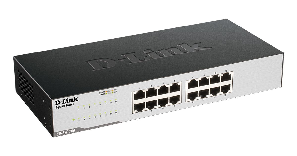 D-Link GO-SW-16G, Hallitsematon, L2, Gigabit Ethernet (10/100/1000), Täysin kaksipuolinen, Telineasennus, 1U