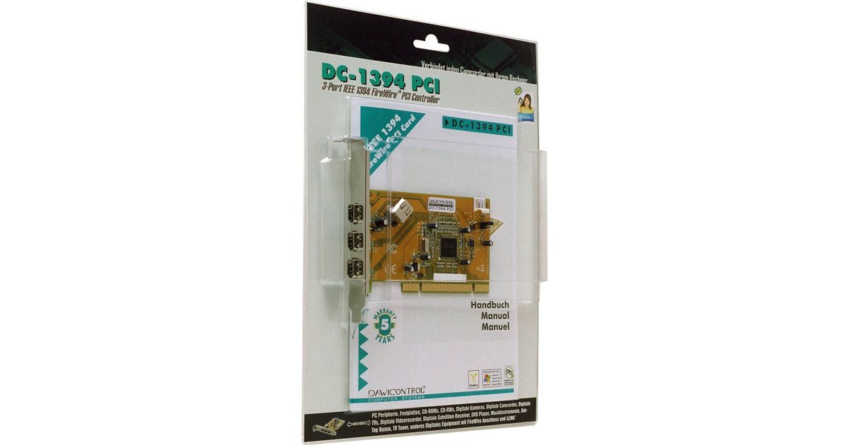 Dawicontrol DC-1394 PCI, PCI, TI 43AB23, 400 Mbit/s, Langallinen, Microsoft Windows 2003/Vista/2000/XP