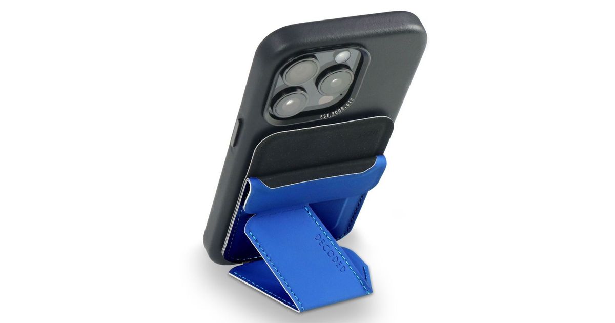 - Magnetic card holder and stand to attach to MagSafe compatible iPhones and the Decoded MagSafe protective cases.