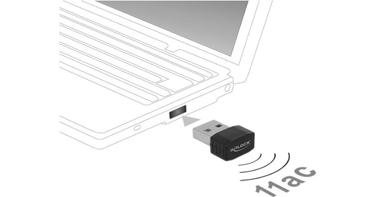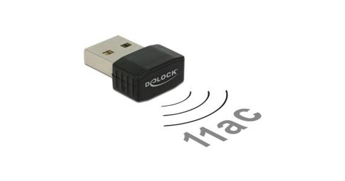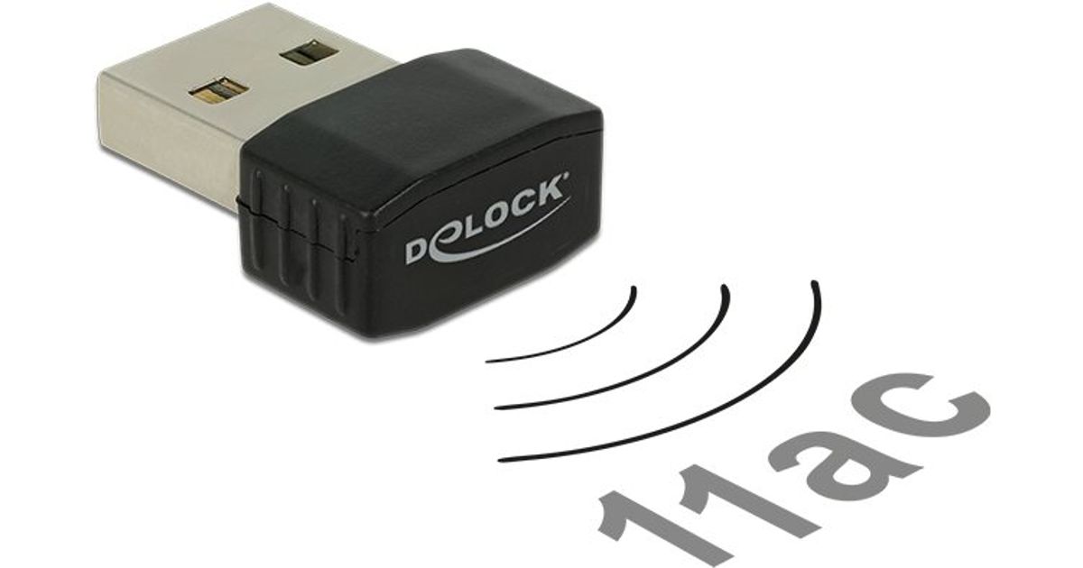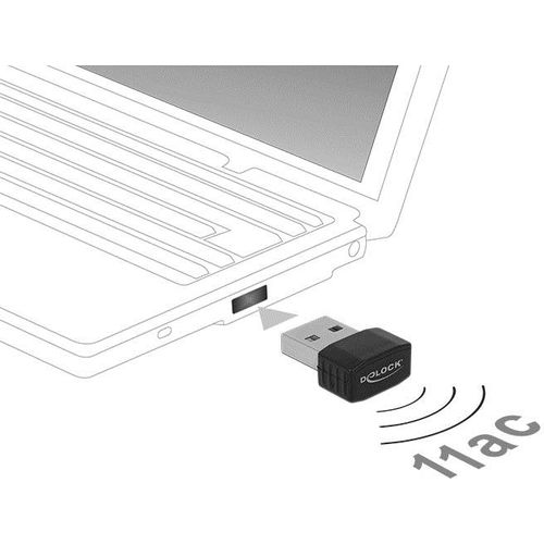 DeLOCK 12461, Langaton, USB, WLAN, Wi-Fi 5 (802.11ac), 433 Mbit/s, Musta