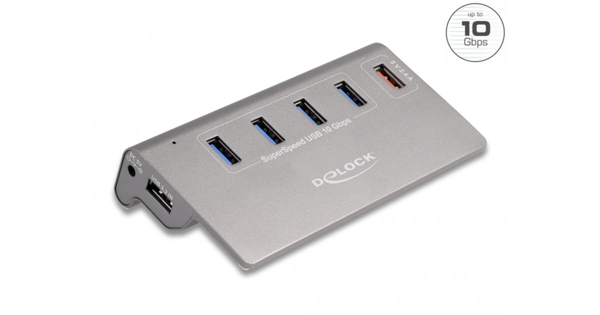 DeLOCK 64182 keskitin USB 3.2 Gen 2 (3.1 Gen 2) Type-A 10 Mbit/s Harmaa