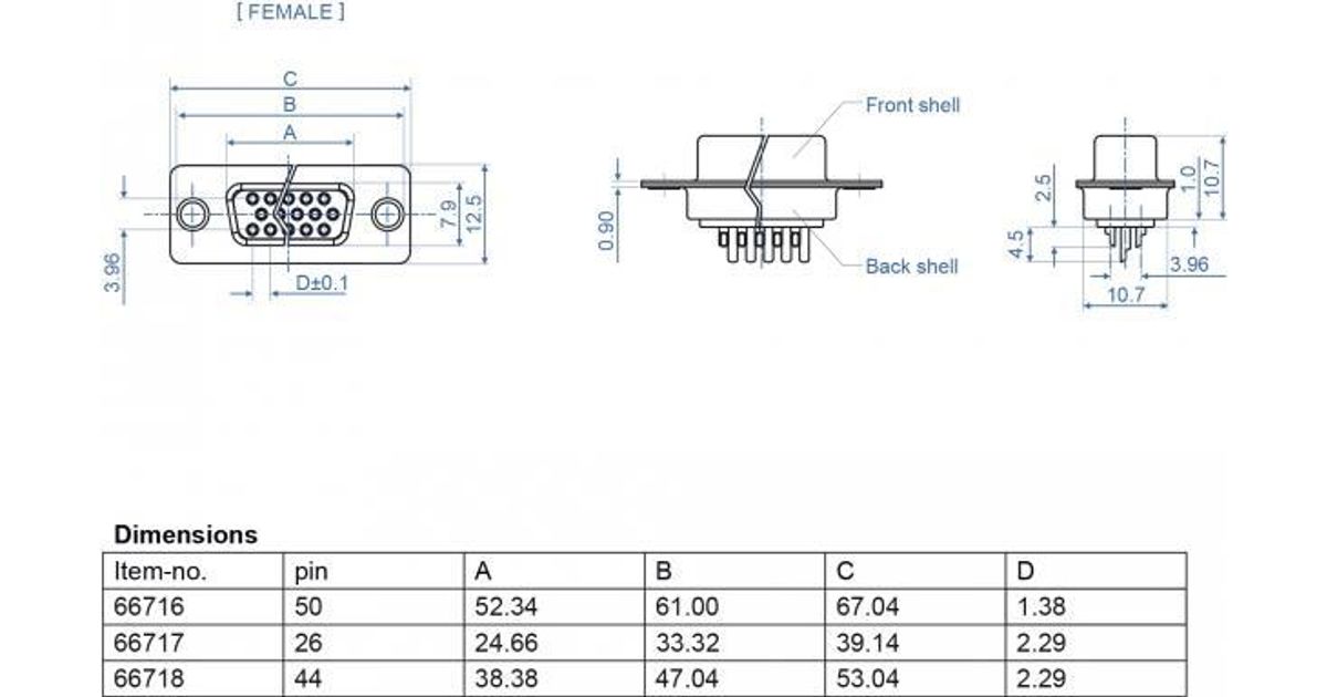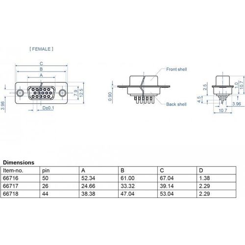 DeLOCK 66716, D-Sub HD 50 pin, Musta, Hopea, Naaras, Suora, Metalli, 12,5 mm