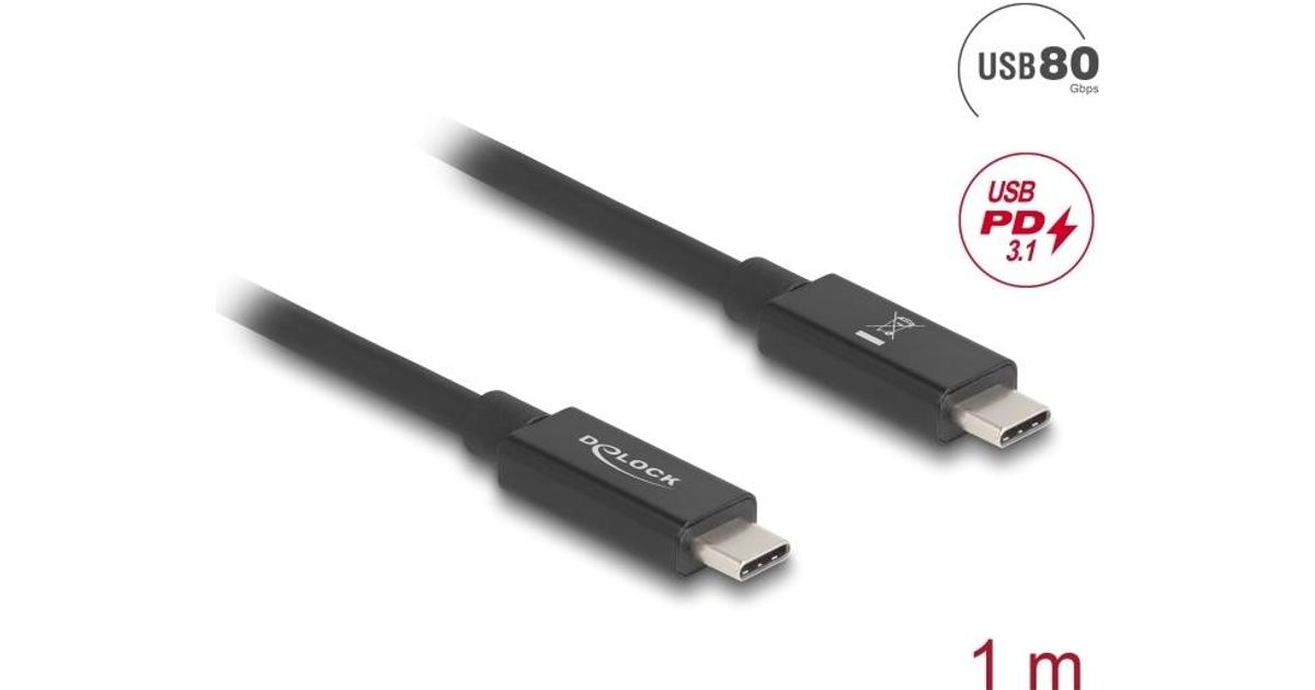 Delock USB 80 Gbps Kabel USB Type-C™ Stecker zu Stecker 16K 60 Hz PD 3.1 240 W E-Marker koaxial 1 m schwarz (81211)