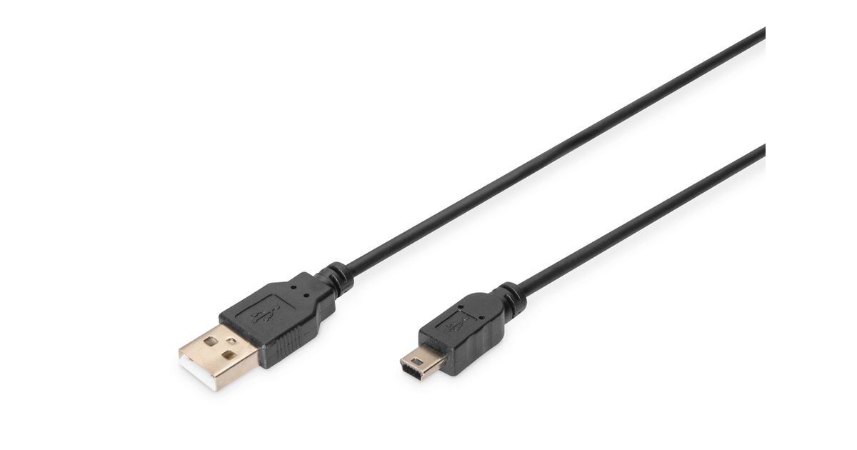 Digitus AK-300130-018-S, 1,8 m, USB A, Mini-USB B, USB 2.0, Uros/uros, Musta