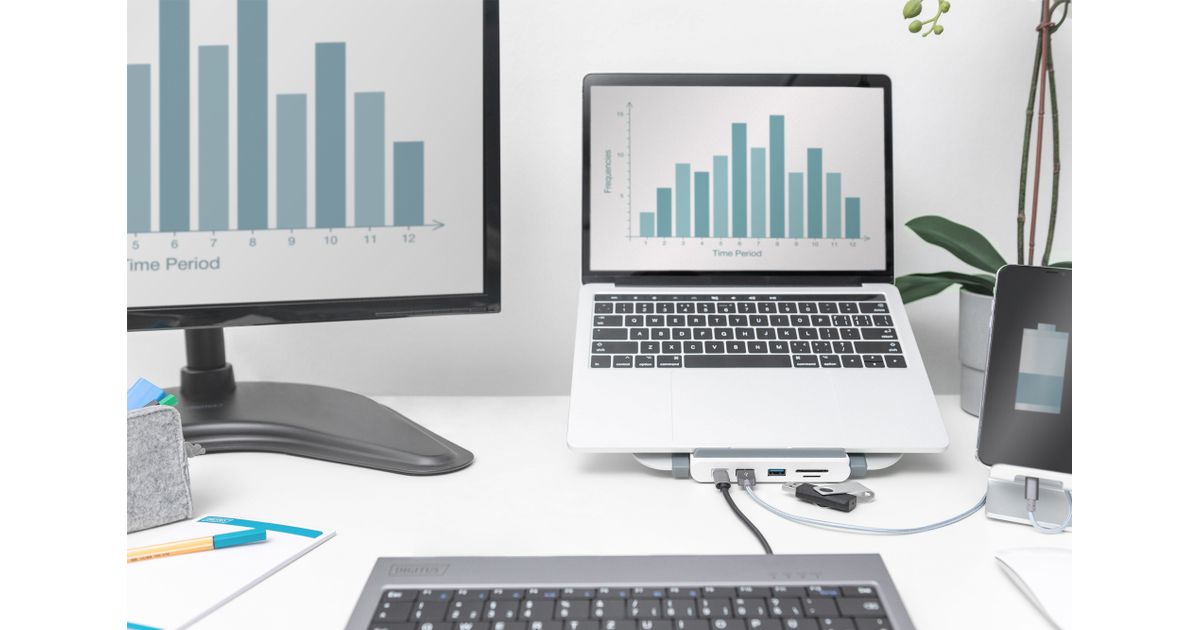 Digitus DA-90408, Langallinen, USB 3.2 Gen 1 (3.1 Gen 1) Type-C, 87 W, 10,100,1000 Mbit/s, Alumiini, MicroSD (TransFlash), SD, SDHC