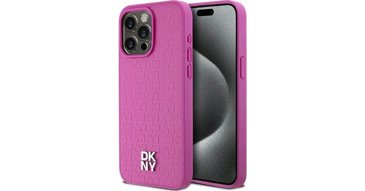 DKNY DKNY DKHMP15XPSHRPSP iPhone 15 Pro Max 6,7-tolline roosa/roosa kõvaümbris Nahast monogramm muster metallist logo MagSafe