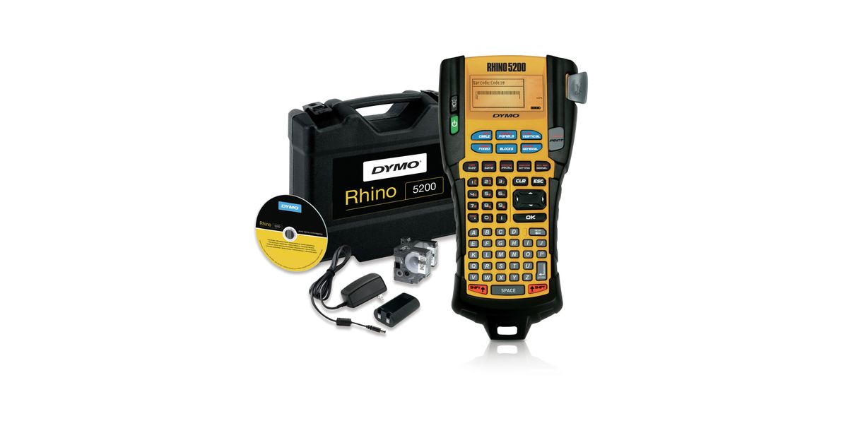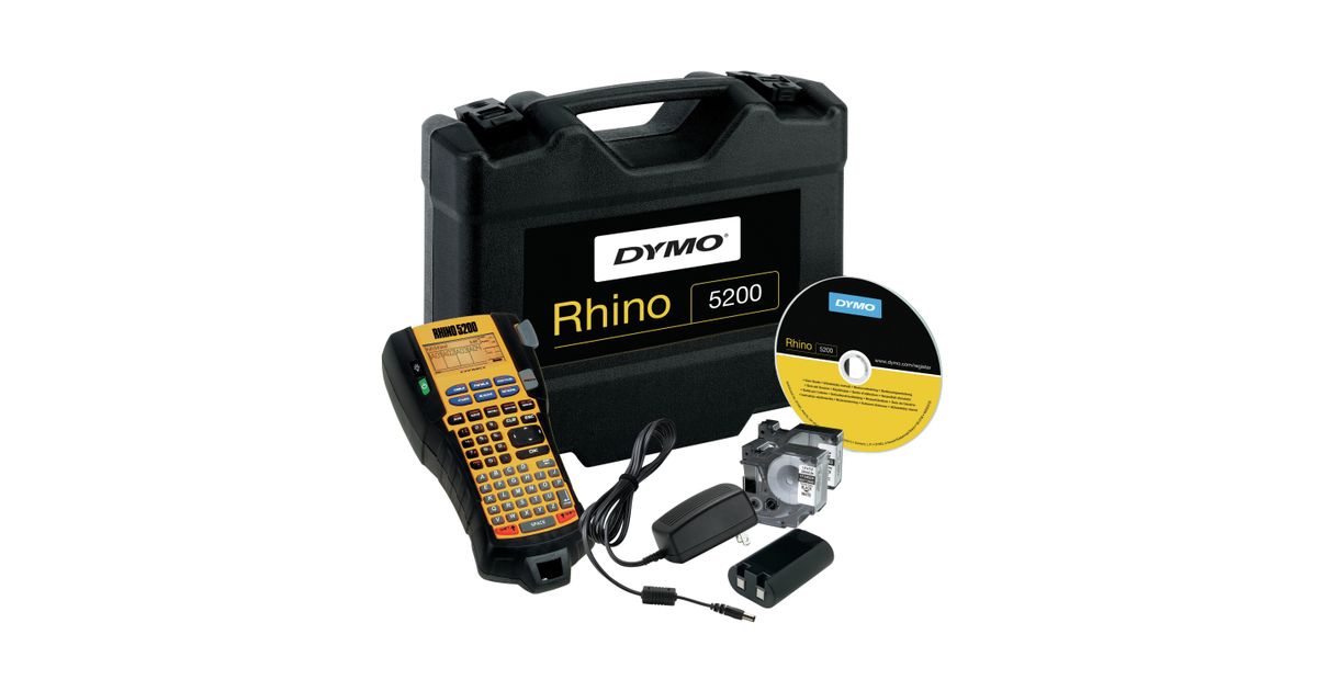 DYMO RHINO 5200 Kit, ABC, Lämpösiirto, 180 x 180 DPI, Litiumioni (Li-Ion), Musta, Keltainen