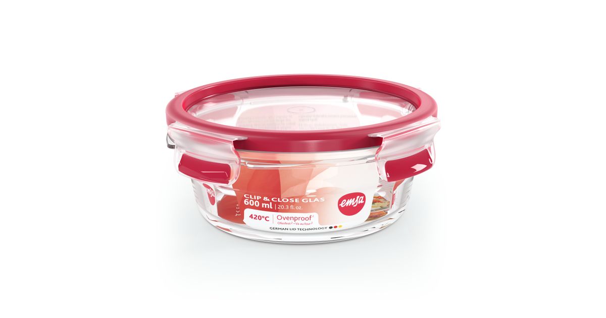 EMSA CLIP & CLOSE N1040300, Laatikko, Pyöreä, 0,6 L, Läpinäkyvä, Lasi, 420 °C
