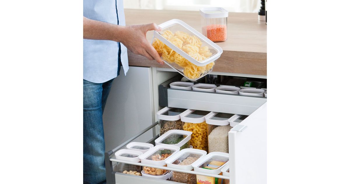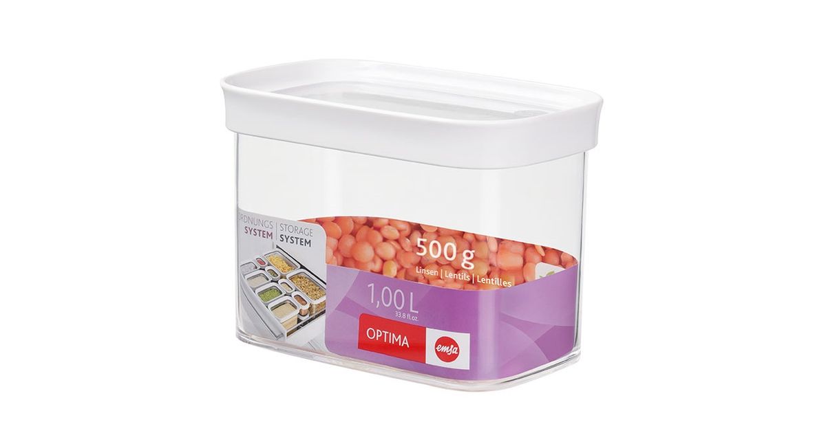 EMSA Optima, Laatikko, Suorakulmainen, 1 L, Läpinäkyvä, Valkoinen, Styreeni-metyylimetakrylaatti (MS), Kestomuovinen elastomeeri, 99 mm