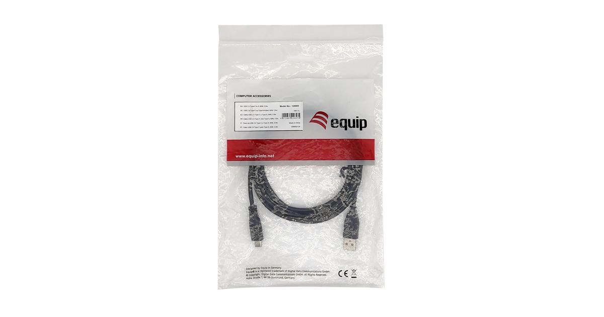 Equip 128885, 2 m, USB A, USB C, USB 2.0, 480 Mbit/s, Musta