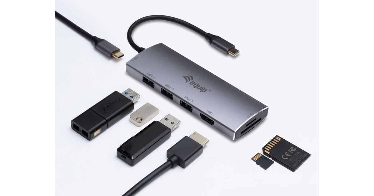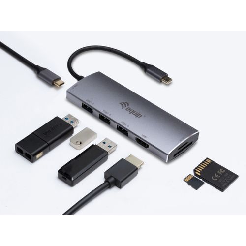 Equip 133482, USB 3.2 Gen 1 (3.1 Gen 1) Type-C, HDMI, USB 3.2 Gen 1 (3.1 Gen 1) Type-A, MicroSD (TransFlash), MicroSDHC, SD, SDHC, 5000 Mbit/s, 30 Hz, Hopea