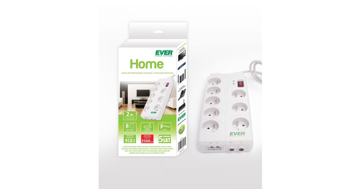 Ever T/LZ05-HOM019/0000, Vaaka/Pysty, Valkoinen, 8 AC-pistorasia(a), Teho, 2 m, 250 V