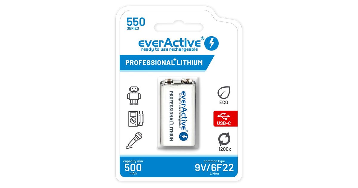 EVERACTIVE 6F22/9V LI-ION 550 MAH BATTERY EVHR22-5