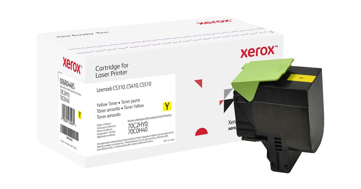 Suuri kapasiteetti Keltainen Everyday-värikasetti Xeroxilta, Lexmark 70C2HY0; 70C0H40 -yhteensopiva, 3000 sivua- (006R04485) suunniteltu suorituskykyä, luotettavuutta ja turvallisuutta varten, joita olet tottunut saamaan Xeroxilta mutta ilman alkuperäisten valmistajien kasetteihin liittyviä kustannuksia. Xerox® Everyday™ -väriainevalikoima sisältää johtavien tulostin- ja kopiokonemerkkien kasetteja - A4-letter/legal sekä A3/tabloid. Väriaineemme kemikaalit ja kasettimme muovit täyttävät tai ylittävät yleiset turvallisuutta ja ympäristöä koskevien alan standardien vaatimukset. Xerox Everyday -väriaineella on elinikäinen takuu, mikä takaa tyytyväisyyden.