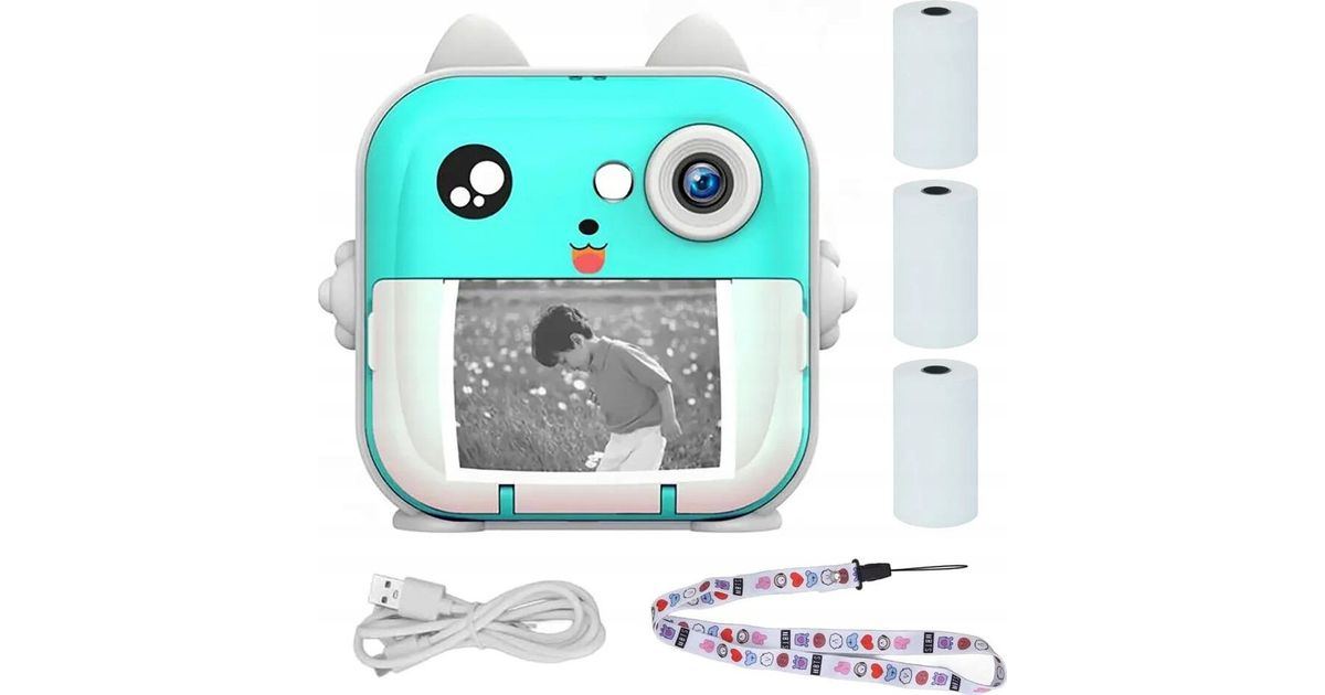 Extralink EPP-004 Blue | Mini Thermal Printer With Camera | 3 rolls of thermal paper, 2.5" LCD screen, Bluetooth, USB-C, 1000 mAh