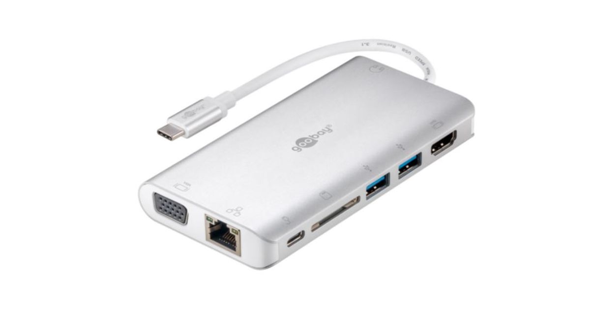 Goobay 49850, Langallinen, USB 3.2 Gen 1 (3.1 Gen 1) Type-C, Hopea, Valkoinen, SD, 5 Gbit/s, 3840 x 2160 pikseliä