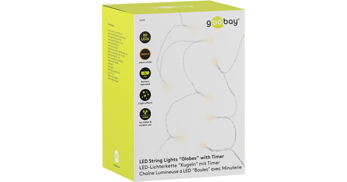 Goobay 60333, Fairy lights, Läpinäkyvä, Valkoinen, Kupari, Muovi, IP44, 6 h, 18 h